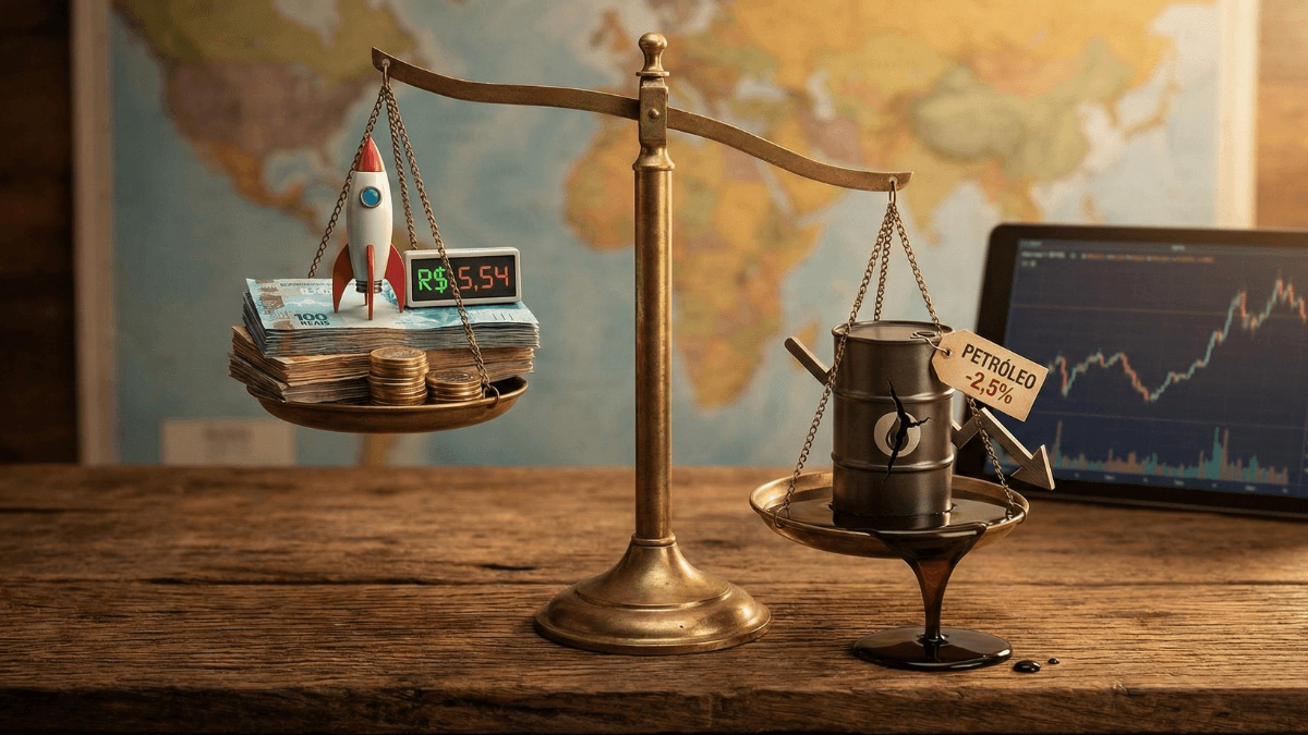 O tombo superior a 2,5% no preço do petróleo ajudou a enfraquecer moedas de exportadores de commodities, como Brasil e México. As cotações recuaram em meio a incertezas geopolíticas envolvendo a Venezuela e a guerra na Ucrânia.