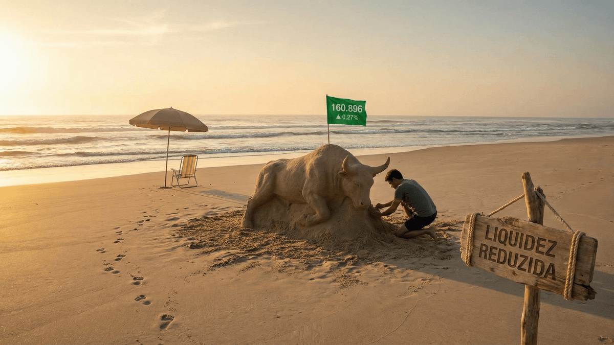 O Ibovespa segue consolidado entre 159 mil e 162 mil pontos, região que vem servindo de faixa de correção desde o início de dezembro. O volume financeiro do dia foi abaixo da média, típico de feriado prolongado.