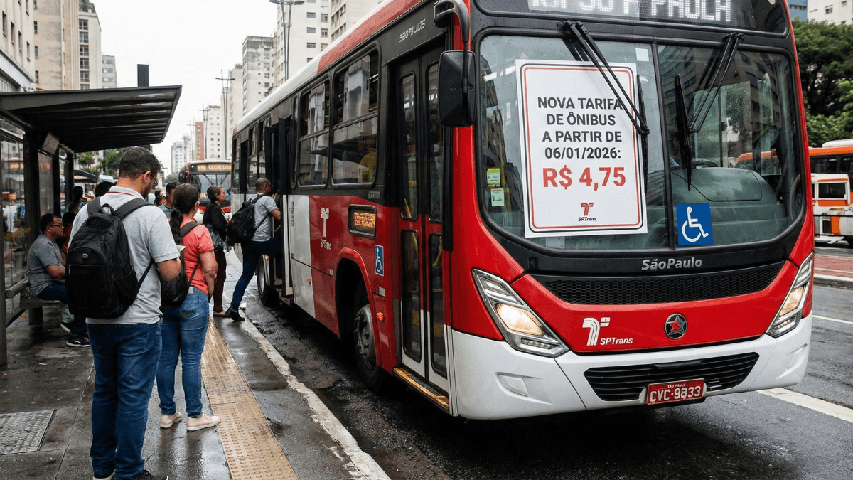 A tarifa básica de ônibus na capital paulista sobe de R$ 5,00 para R$ 5,30, um reajuste de 6% anunciado pela Prefeitura de Ricardo Nunes em 29 de dezembro de 2025. O valor será oficializado na Câmara Municipal após análise do Conselho Municipal de Trânsito e Transporte (CMTT)